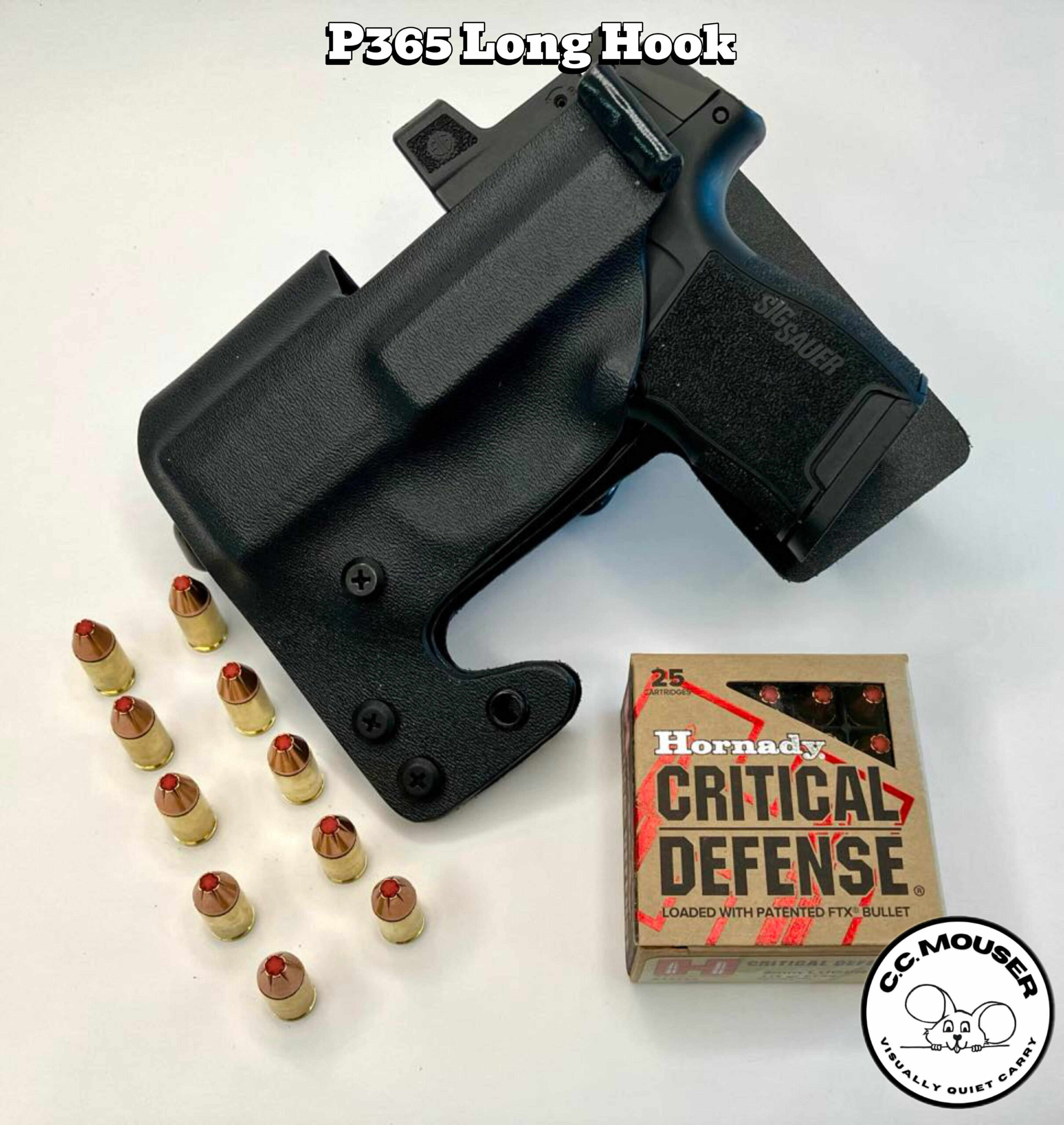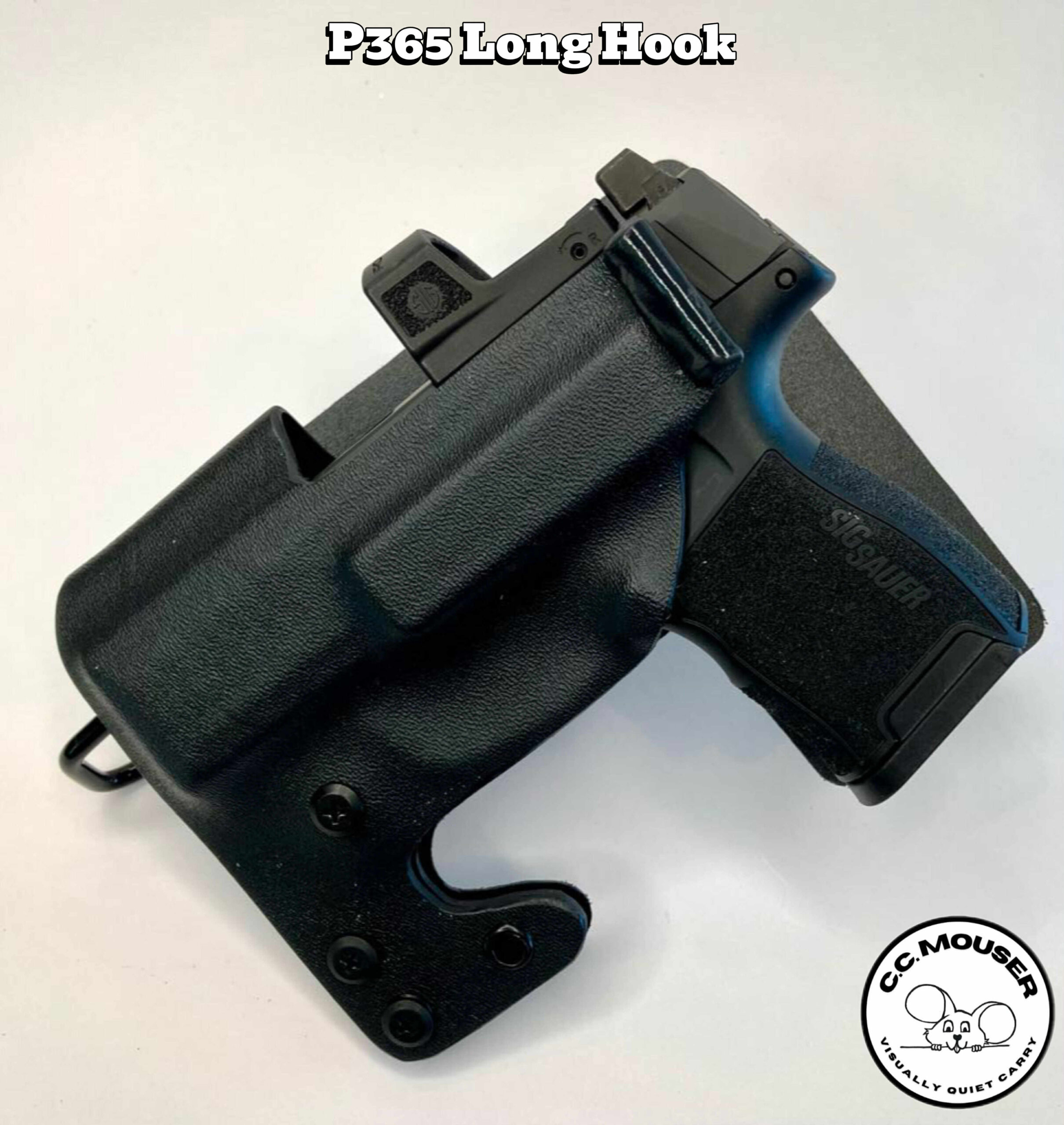 The Outrigger Pocket Holster is our answer for an affordable, top quality pocket carry of the Sig Sauer P365. We have variations for the P 365-380 ACP, the P365-SAs, and the P365-9MM. They are available in both short and long hook holsters.